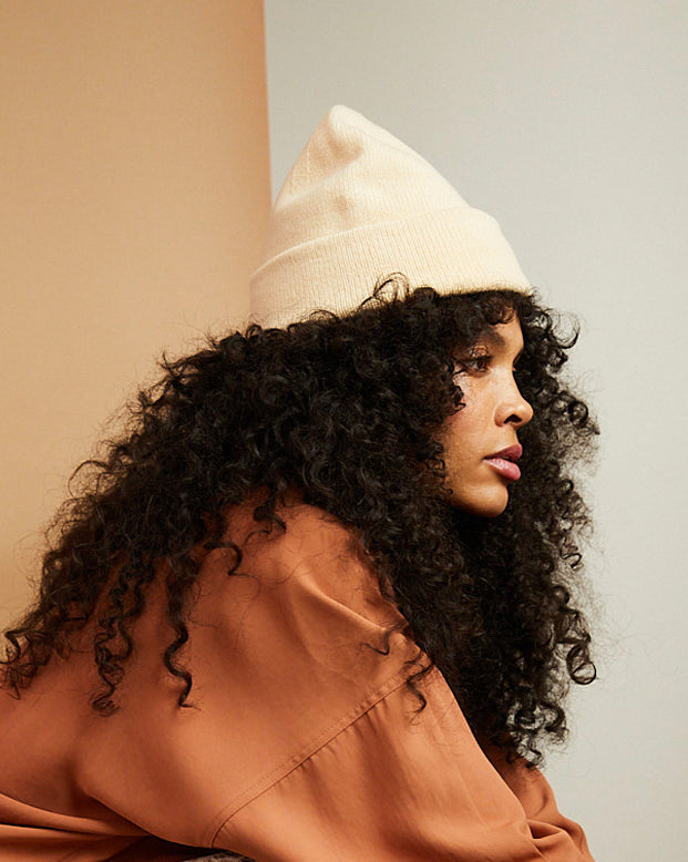 Crafted with a single knit double layer, large cuff and taller brim for an oversized fit.