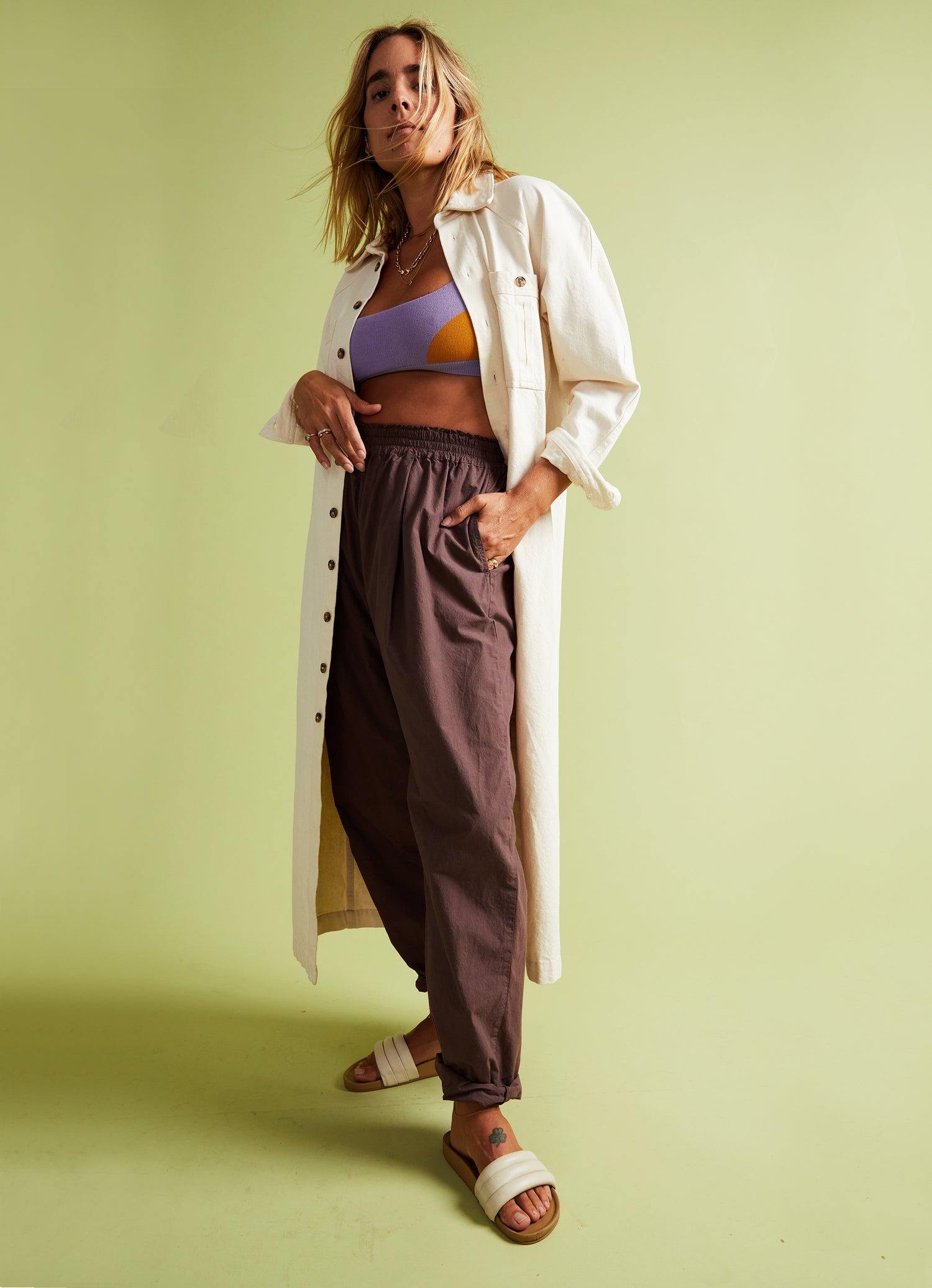 The Every Wear Pant are an easy loose fit, designed to be worn as a trans-seasonal piece, featuring an elastic waist, side pockets, two deep front pleats, and a soft cotton straighter leg fit to be worn cuffed, double roll pegged, or as a clean hem.